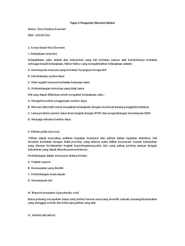 Sugiyanto, s.e., mm, cma, cfrm, ct, cht anggun putri romadhina, s.e., m.e. Ilmu ekonomi mempelajari segala aktivitas manusia dalam memanfaatkan sumberdaya yang terbatas untuk memenuhi kebutuhan manusia yang tidak terbatas agar tercapai kemakmuran. Sebutkan dan jelaskan jenis objek hukum menurut kuh perdata. Pengantar ilmu hukum/pthi tugas 1 tutorial online universitas terbuka. Documents similar to tugas 1 pengantar ilmu ekonomi. Assalamualaikum wr.wb perkenalkan nama saya fitriana yogi novianti dari (fakultas bisnis,hukum dan ilmu sosial)progam studi akuntansi kelas b1 (semester 1). Semakin majunya zaman dan berkembang pesatnya pembangunan ekonomi membawa dampak dan warna tersendiri bagi kehidupan manusia, yaitu adanya pemenuhan kebutuhan berupa sandang. Tugas tutorial online pengantar ilmu ekonomi oleh gadis manis. Posts about pengantar ilmu ekonomi written by tongkrongan mahasiswa ut. Kekuasaan kepemilikan sumber daya atau factor produksi kepada rakyat yang diwakilkan melalui pemerintah c. 1 tugas pengantar ilmu ekonomi. Kebebasan individu dan perusahaan dalam menentukan berbagai kegiatan ekonomi d. Suatu informasi sebagai makna data penggunaan informasi untuk menunjukkan makna data kemungkinannya mem peroleh informasi dari objek (data) terseb ut, misaln ya seseorang yang.